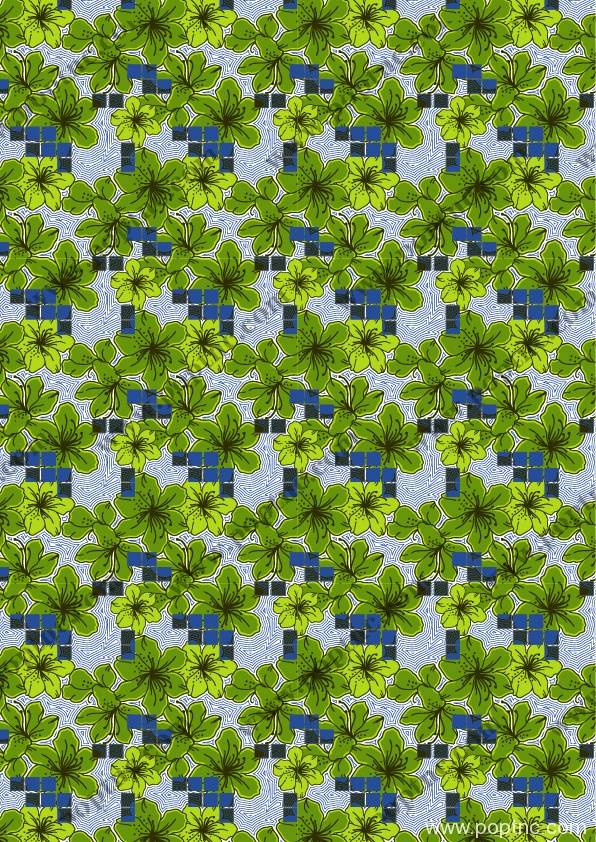 绿色花朵蓝色小方格数码印花图案