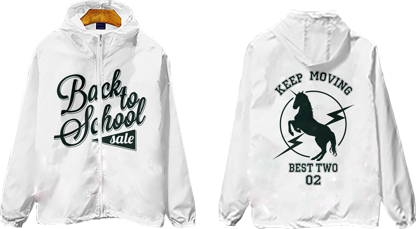 这款时尚校园风裁片印花服装采用独特的设计,正面印有’Back to School Sale’字样,背面则是’Keep Moving’激励语搭配马的图案,适合学生和年轻人展现个性与活力。无论是日常穿着还是校园活动,这款服装印花都能让您成为焦点。