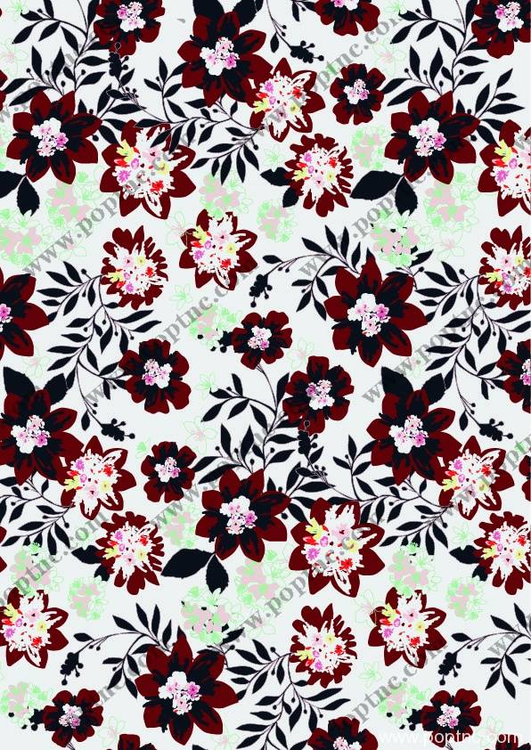 POP花型网 » 植物印花枣红色花瓣数码印花图案