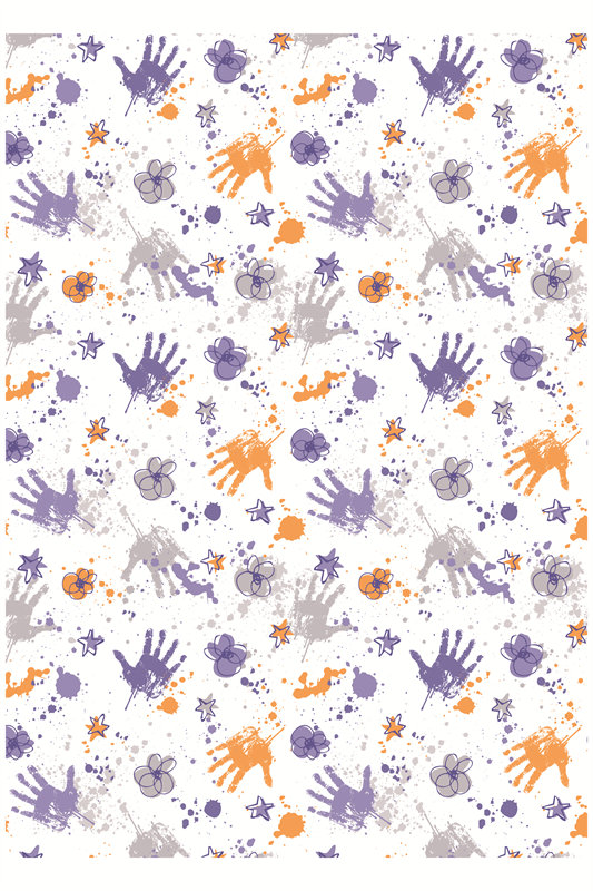 这款独特的服装印花面料以手印和星星为设计元素,采用紫色、橙色和灰色调,充满童趣和活力。适合用于制作儿童服装、派对装饰或创意家居用品,为您的设计增添无限乐趣和个性。