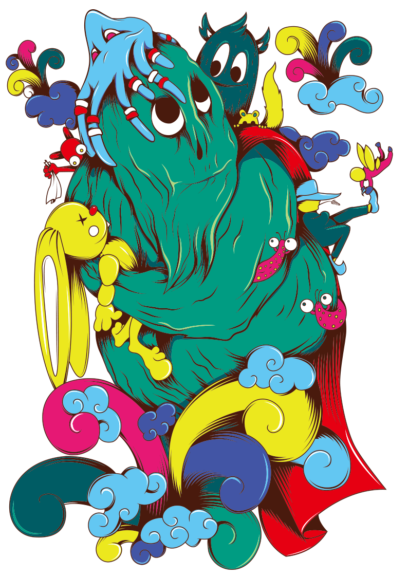 POP花型网 » 卡通怪兽云朵图案服装T恤烫图印花花型素材