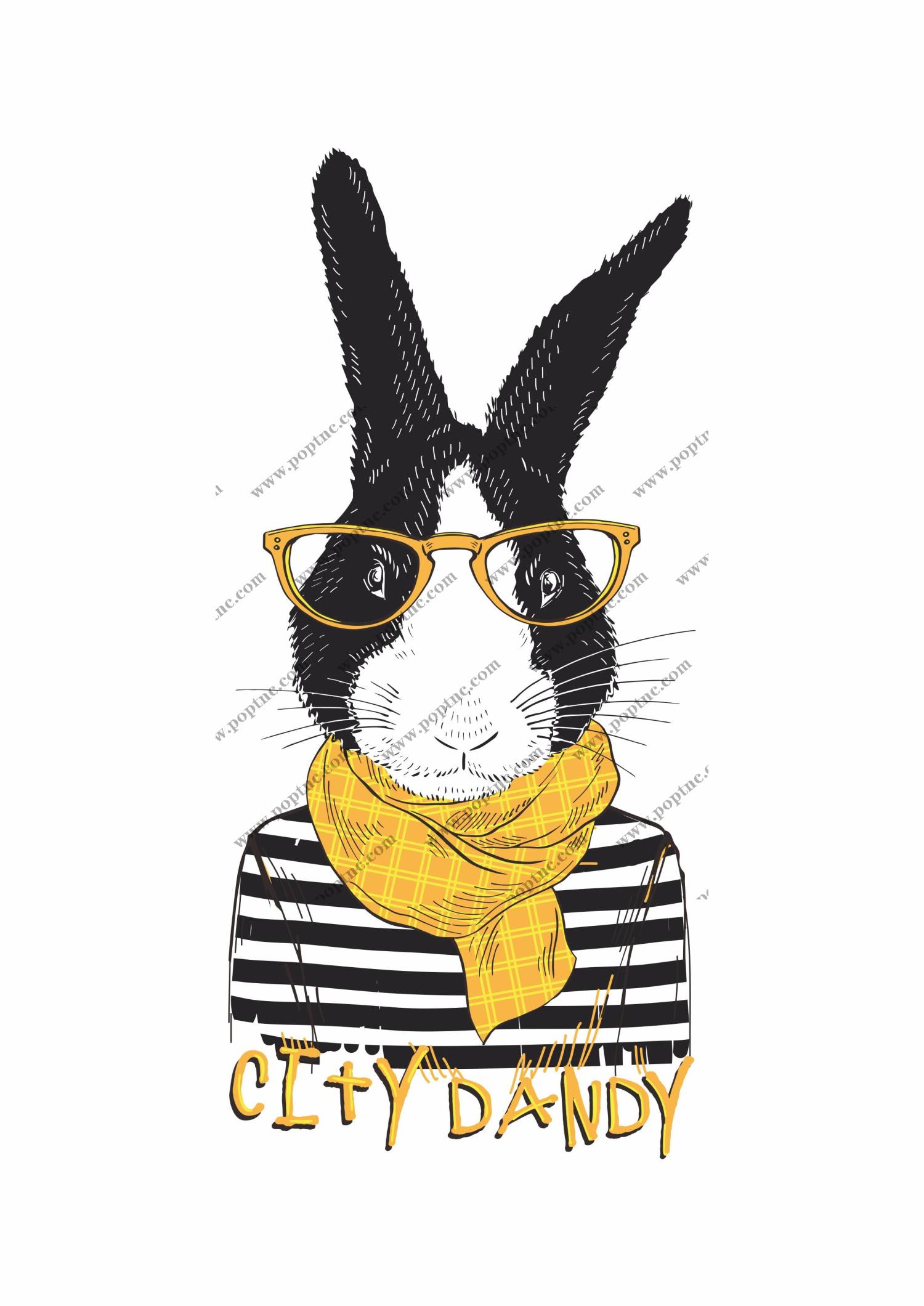 POP花型网 » 动物兔子字母矢量图服装T恤裁片烫图印花花型素材