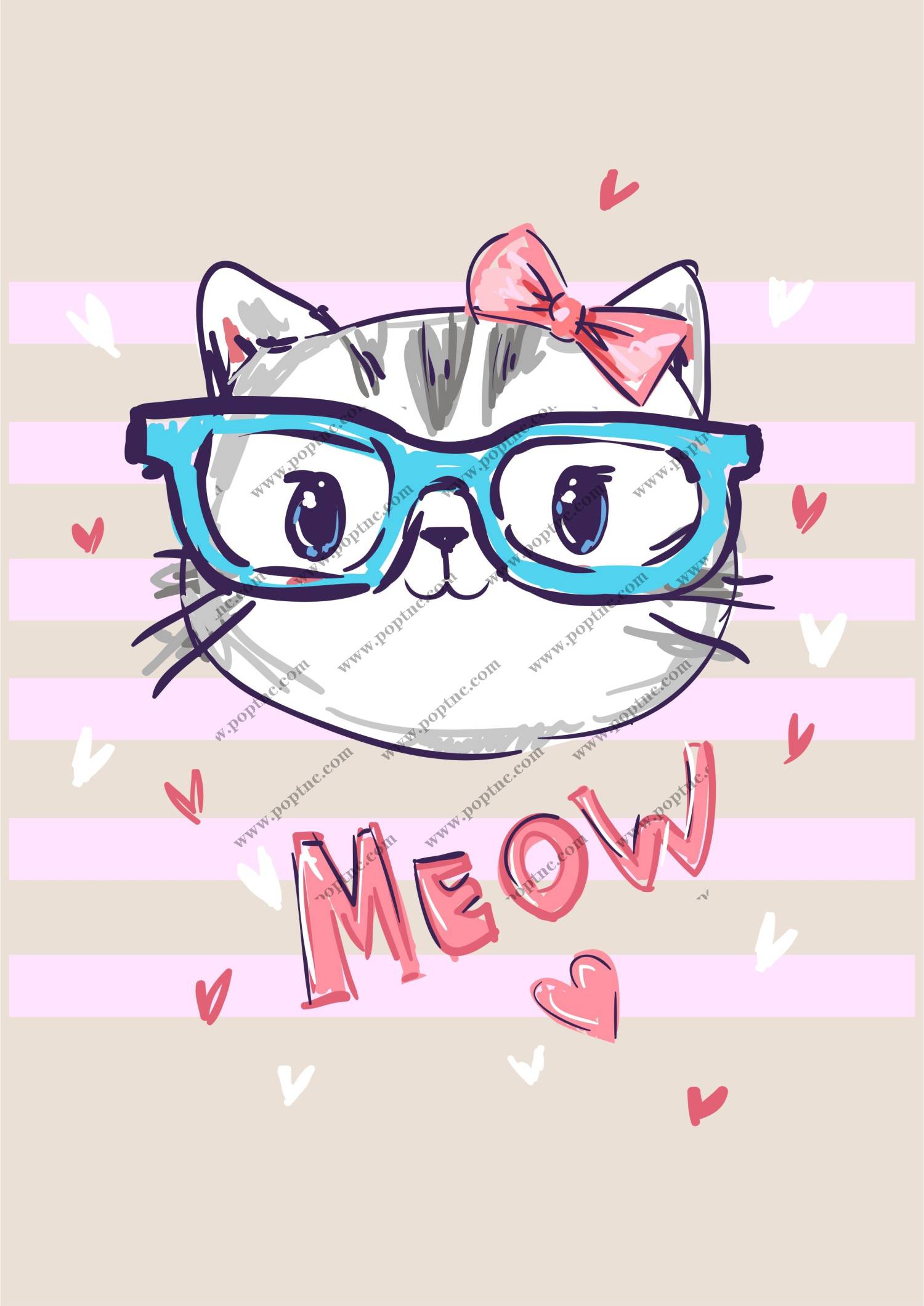 POP花型网 » 猫咪眼镜心形字母矢量图服装T恤裁片烫图印花花型素材