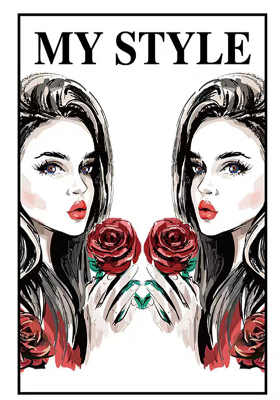 这款时尚个性裁片印花服装采用独特的设计,将艺术与时尚完美结合。服装印花图案以两个对称的女性形象为中心,手持红玫瑰,展现出优雅与个性。无论是日常穿着还是特殊场合,这款服装都能让您成为焦点。
