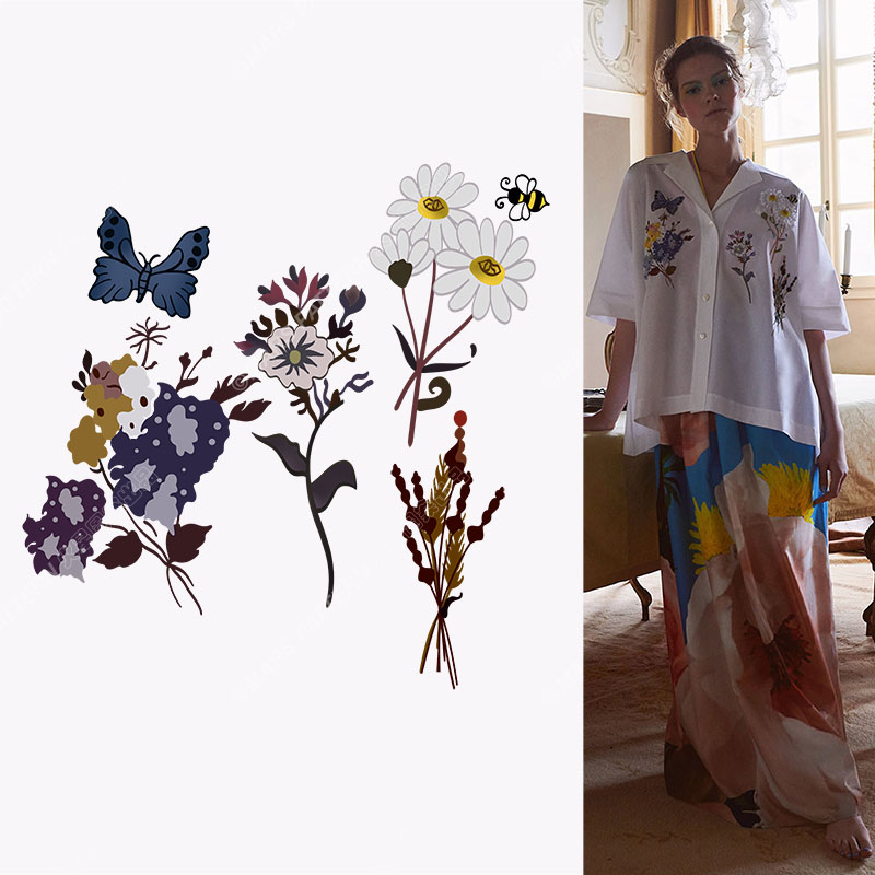 POP花型网 » 植物花朵蝴蝶矢量图服装T恤裁片烫图印花花型素材