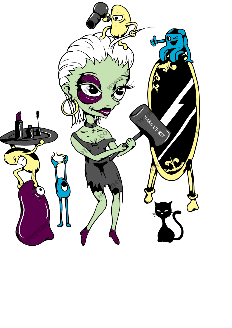 POP花型网 » 卡通人物怪兽猫咪图案服装T恤裁片烫图印花花型素材
