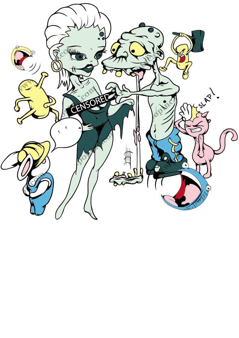 POP花型网 » 卡通怪兽僵尸免抠图服装T恤裁片烫图印花花型素材
