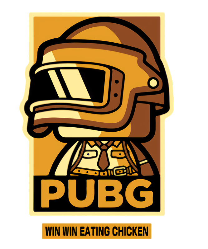 这款PUBG主题的裁片印花服装印花设计,以游戏角色的头盔和装备为灵感,结合’WIN WIN EATING CHICKEN’的口号,展现出独特的游戏文化魅力。适合游戏爱好者和时尚达人,无论是日常穿着还是游戏聚会,都能彰显个性。
