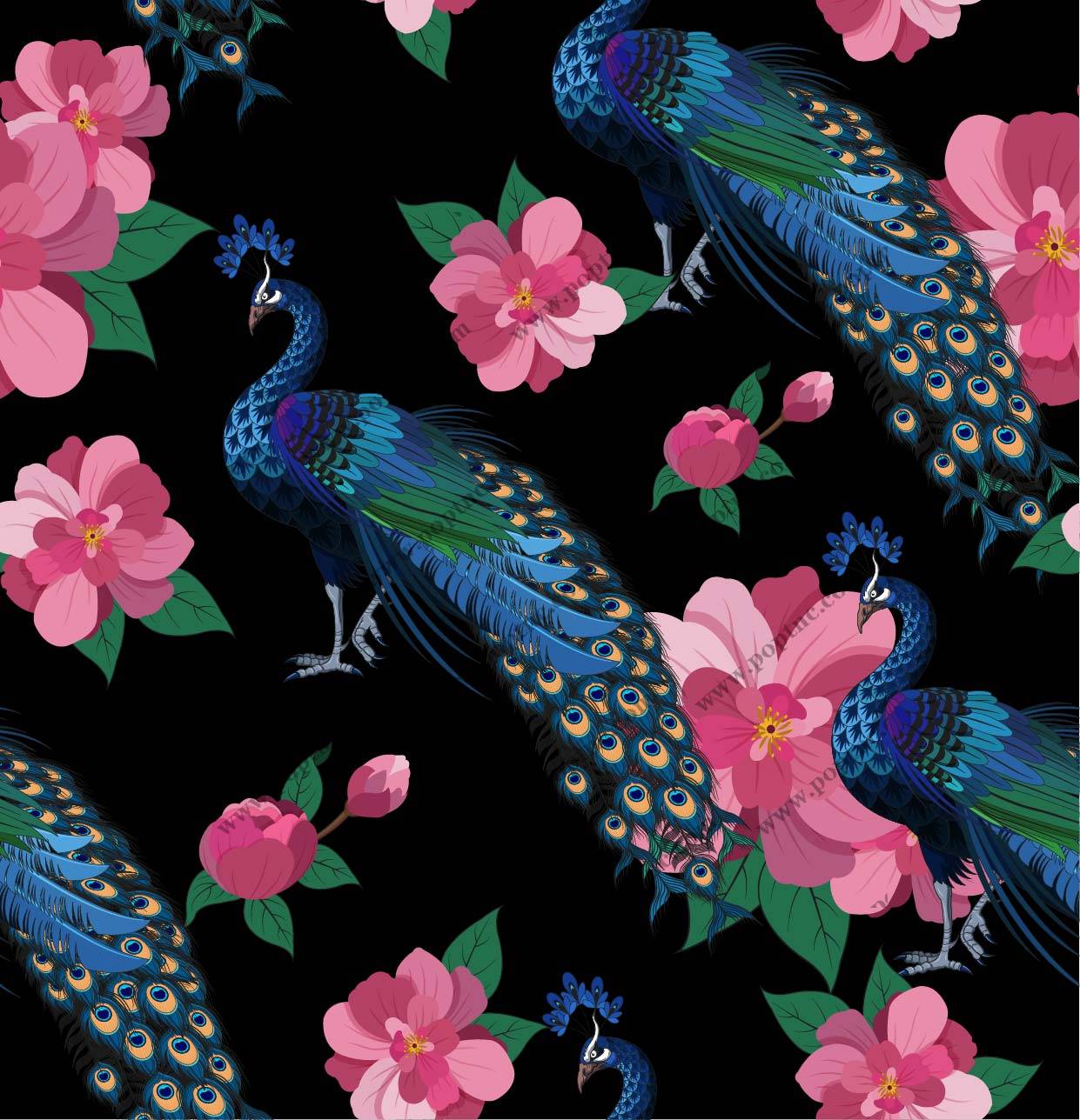 POP花型网 » 植物花朵桃花孔雀拼接印花矢量图服装纺织面料数码印花花型素材