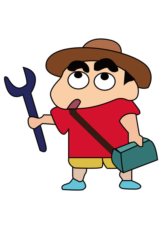 这款卡通风格的工人形象裁片印花服装印花设计,以生动的红色T恤搭配黄色短裤,手持工具,肩挎工具箱,展现出活力与专业。适合用于儿童服装印花,增添趣味性和教育意义。
