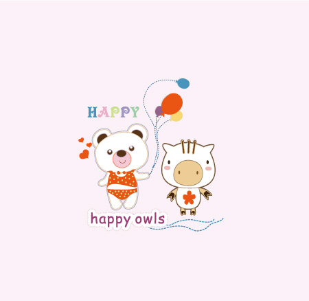 可爱卡通熊与猫头鹰裁片印花服装设计