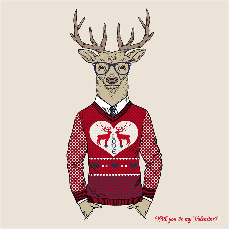 这款情人节主题的裁片印花服装,以独特的鹿头图案和心形设计为特色,完美融合了时尚与浪漫。适合情人节、派对或日常穿着,展现个性与魅力。