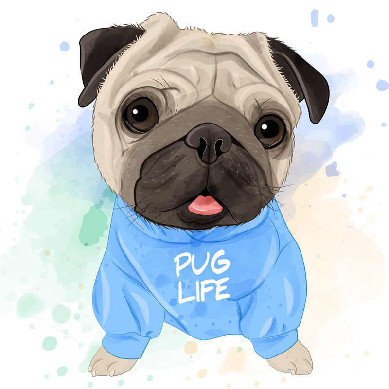这款设计以卡通哈巴狗为灵感,穿着印有’PUG LIFE’字样的蓝色卫衣,展现出活泼可爱的风格。适用于儿童和宠物服装印花,增添趣味和个性。裁片印花技术确保图案清晰,色彩鲜艳,适合各种休闲场合穿着。