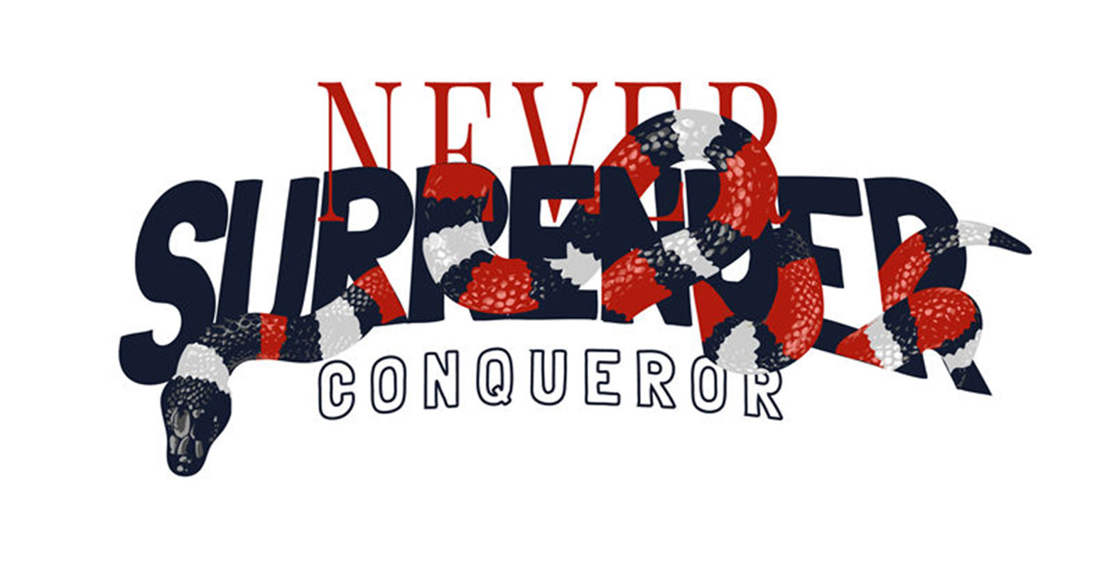 这款独特的蛇纹裁片印花服装,以大胆的红、白、蓝三色蛇纹图案和醒目的’NEVER SUBDUE CONQUEROR’字样,展现出强烈的个性和不屈不挠的精神。无论是日常穿着还是特殊场合,这款服装印花都能让您成为焦点,彰显您的独特品味和风格。