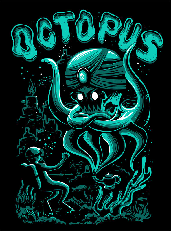 POP花型网 » 深海探险主题裁片印花服装,独特章鱼图案服装印花设计