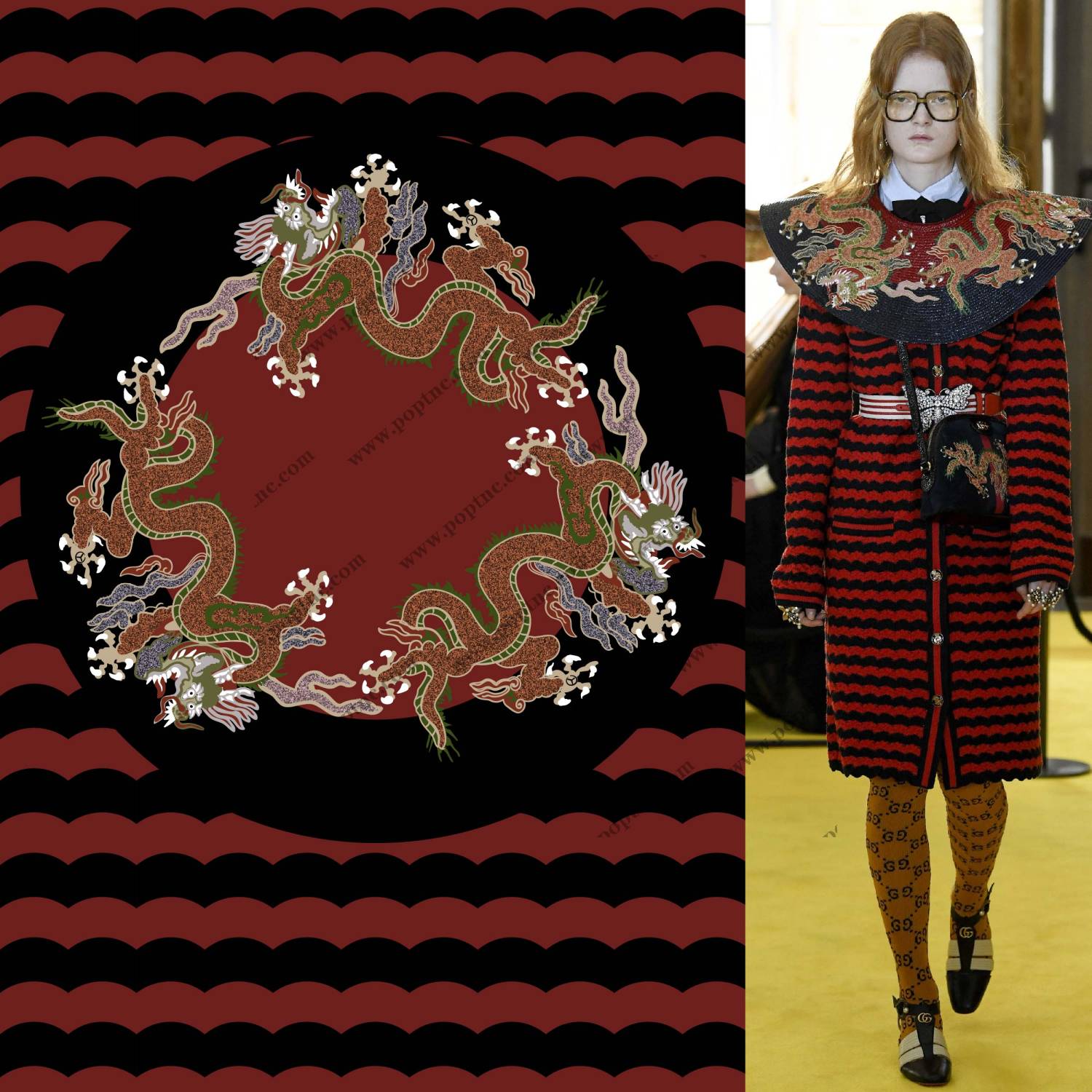 POP花型网 » 中国风几何波浪纹龙印花矢量图服装裁片T恤烫图印花花型素材