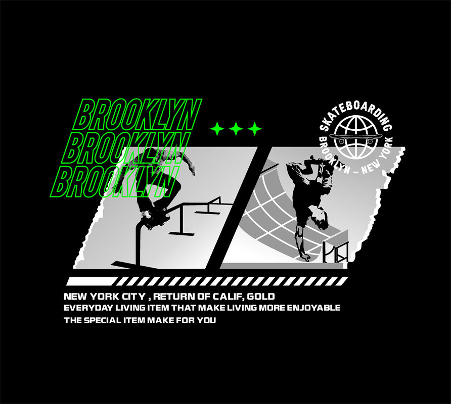 POP花型网 » 探索纽约布鲁克林的街头文化:滑板主题裁片印花服装