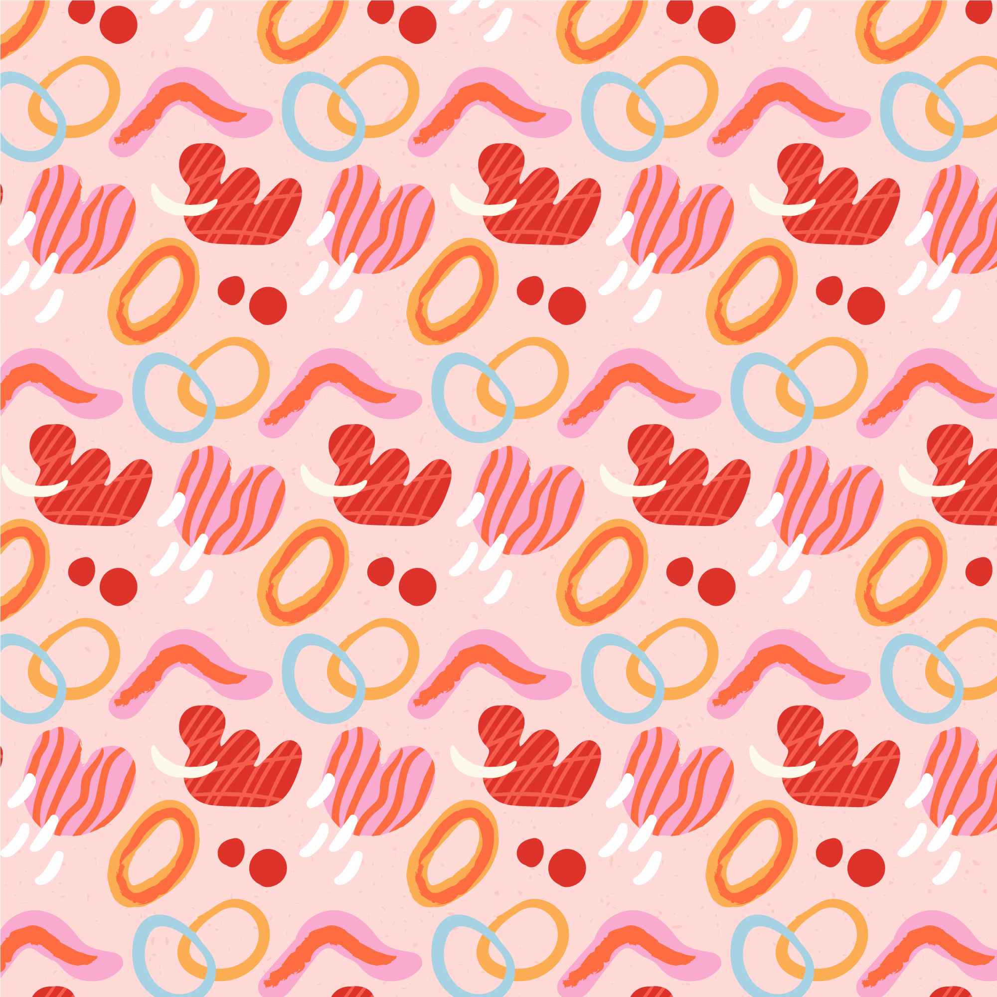 这款面料印花设计以柔和的粉色为底,搭配红色、橙色和蓝色的波浪线与圆点,营造出甜美而浪漫的春季氛围。适用于制作女性连衣裙、衬衫或儿童服装,为日常穿搭增添一抹活泼与温馨。