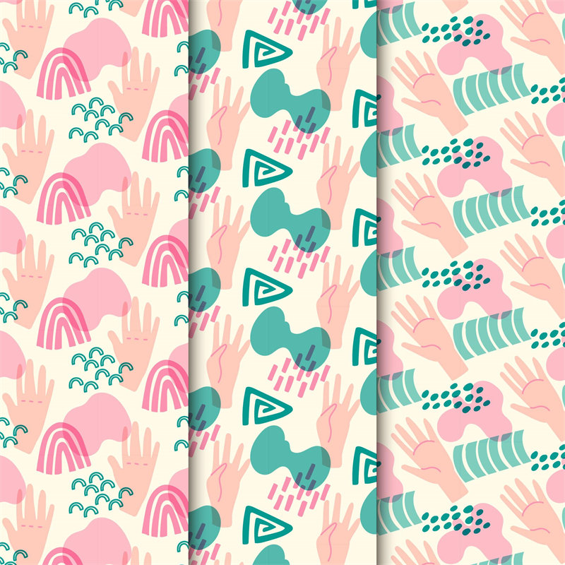 这款手绘抽象图案服装印花,以手绘风格的手掌、几何图形和抽象色块为设计元素,不仅展现了独特的艺术感,还具有时尚的现代感。适用于各种服装设计,无论是T恤、连衣裙还是外套,都能为您的服装增添一抹亮色。
