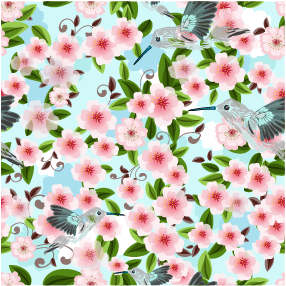 POP花型网 » 植物桃花蜂鸟印花矢量图服装纺织面料数码印花花型素材
