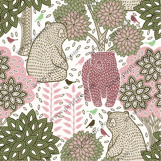 POP花型网 » 几何卡通棕熊印花矢量图服装纺织面料数码印花花型素材