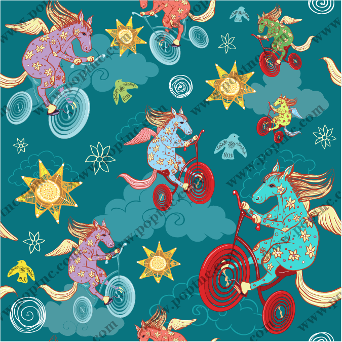 POP花型网 » 几何抽象图片马匹自行车印花矢量图服装纺织面料数码印花花型素材