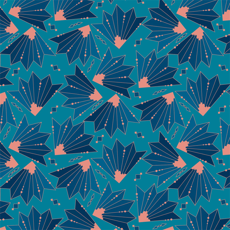 POP花型网 » 探索自然之美:深蓝与珊瑚粉的几何服装印花面料