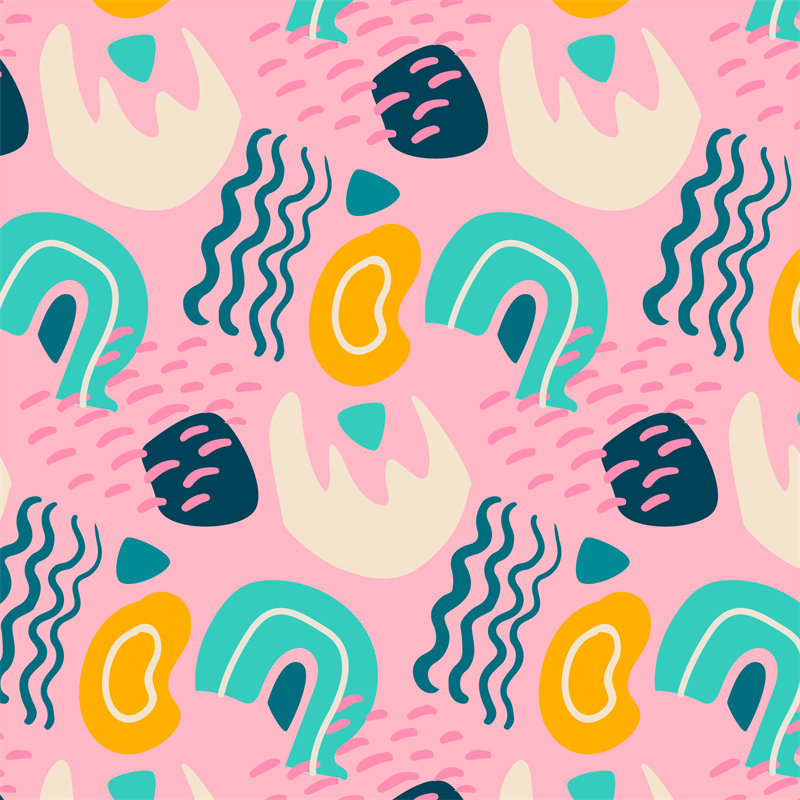 这款充满活力的抽象几何服装印花面料,以柔和的粉色为底色,搭配跳跃的蓝、黄、黑等色彩,展现出一种现代艺术的美感。适用于春夏季节的服装设计,无论是休闲装还是时尚单品,都能增添一抹亮丽的色彩。