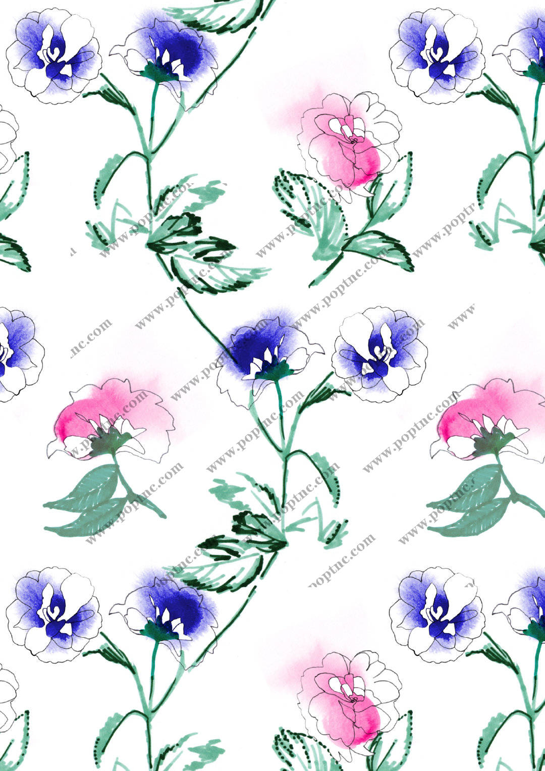 POP花型网 » 植物花卉拼接矢量图数码印花源文件