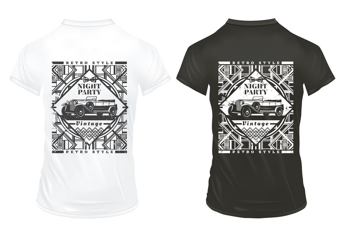 这款复古风格的服装印花设计,以经典汽车和几何图案为元素,完美融合了复古与现代时尚。适用于各种夜派对和社交活动,展现你的独特品味。黑白两色可选,让你在任何场合都能成为焦点。