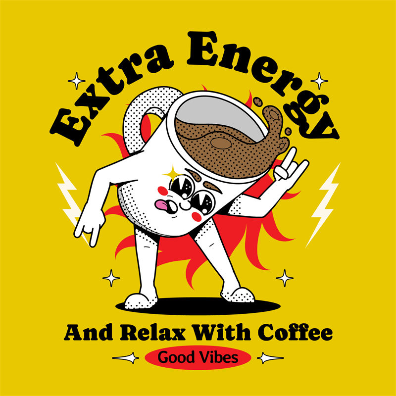 活力四射的咖啡主题裁片印花服装,享受放松时刻