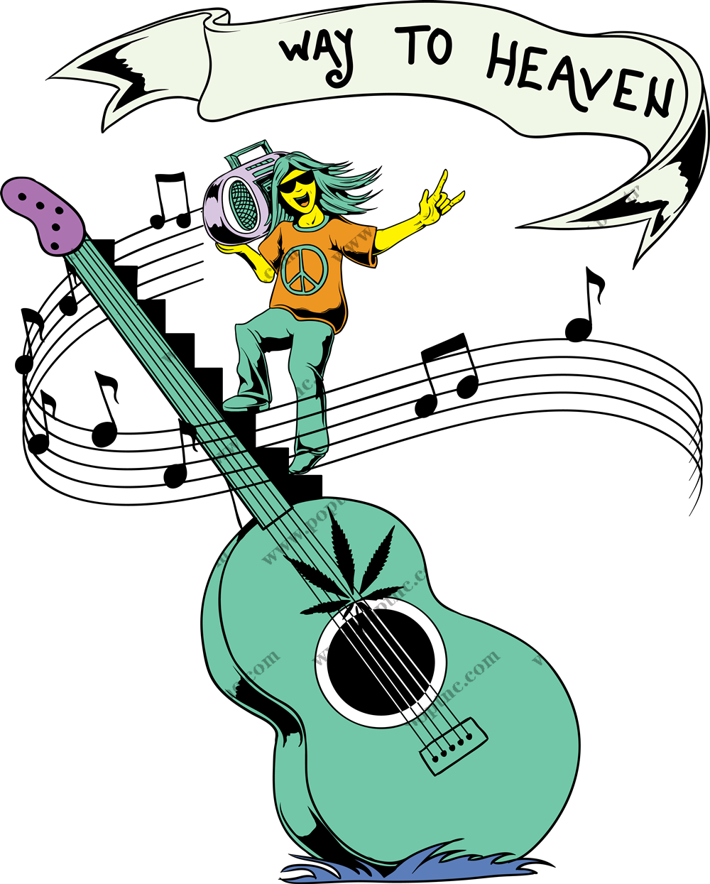 POP花型网 » 吉他音乐人物字母印花矢量图服装裁片T恤烫图印花花型素材