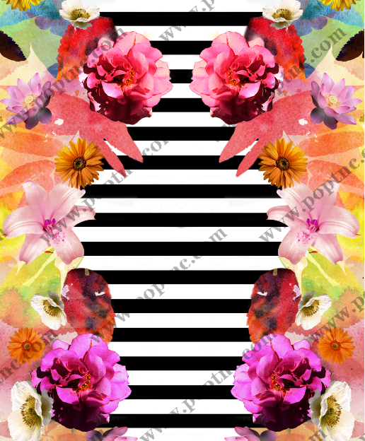 POP花型网 » 黑白条子牡丹花印花图案服装纺织面料数码印花花型素材