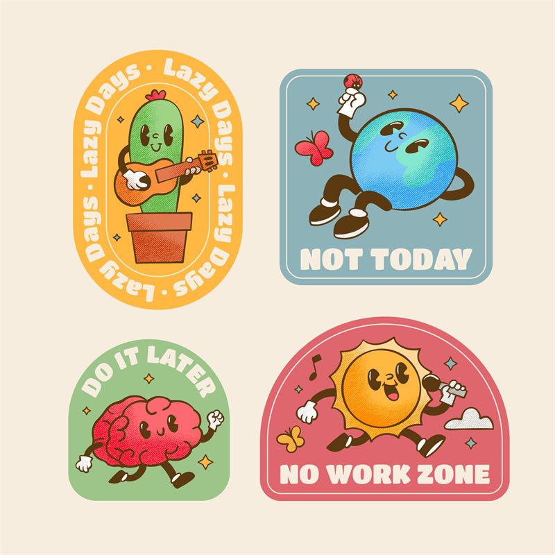 这款服装印花设计灵感来源于懒洋洋的周末,采用轻松舒适的图案和色彩,适合居家休闲。图案包括一个弹吉他的仙人掌、一个穿着运动鞋的地球、一个思考的脑筋和一个唱歌的太阳,充满趣味和活力。适合喜欢轻松休闲风格的消费者。