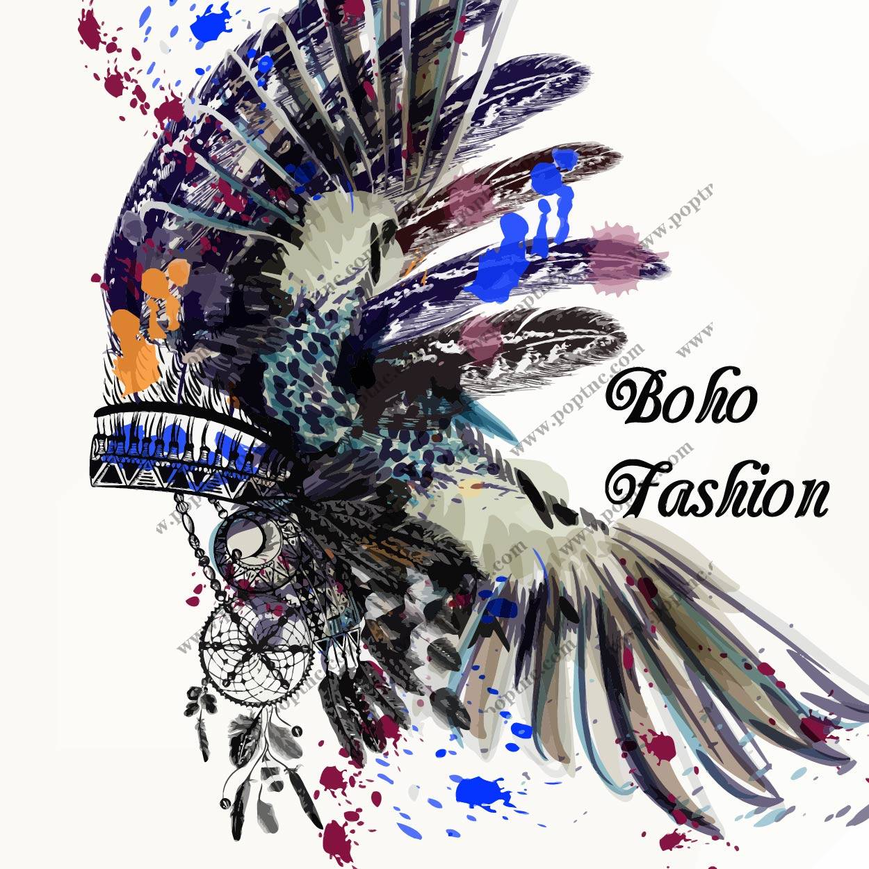 几何涂鸦羽毛印花矢量图服装裁片T恤烫图印花花型素材
