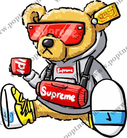 POP花型网 » 卡通动漫熊SUPREME字母印花矢量图服装裁片T恤烫图印花花型素材