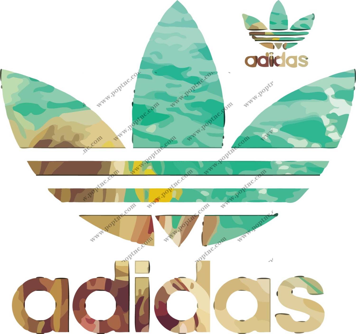 POP花型网 » 大牌多彩adidas三叶草印花矢量图服装裁片T恤烫图印花花型素材