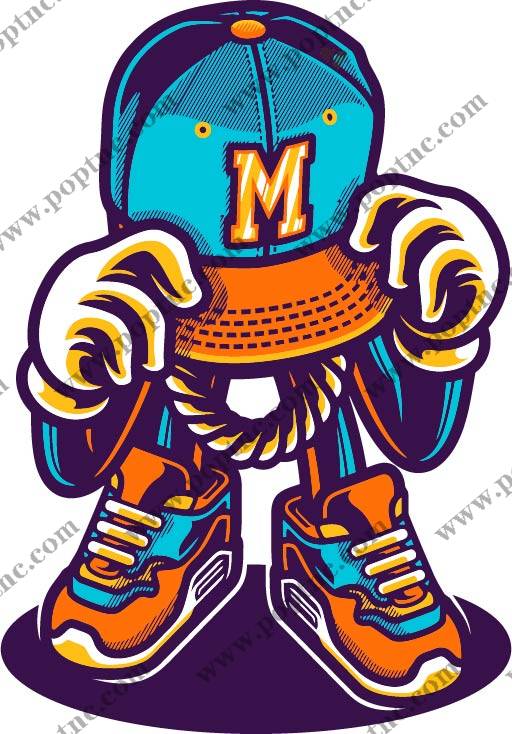 POP花型网 » 卡通动漫人物棒球帽字母印花矢量图服装裁片T恤烫图印花花型素材