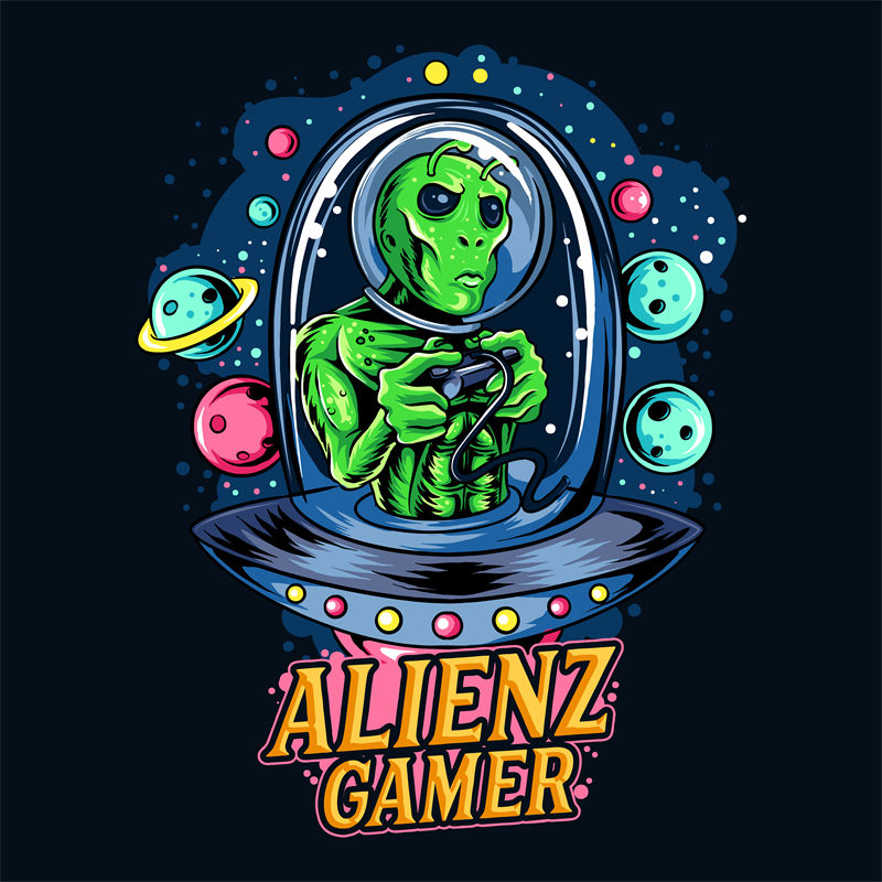 POP花型网 » 外星人游戏机裁片印花:独特创意服装印花设计