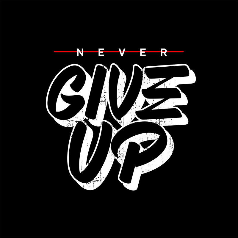POP花型网 » 时尚个性“NEVER GIVE UP”服装印花素材,彰显坚韧精神