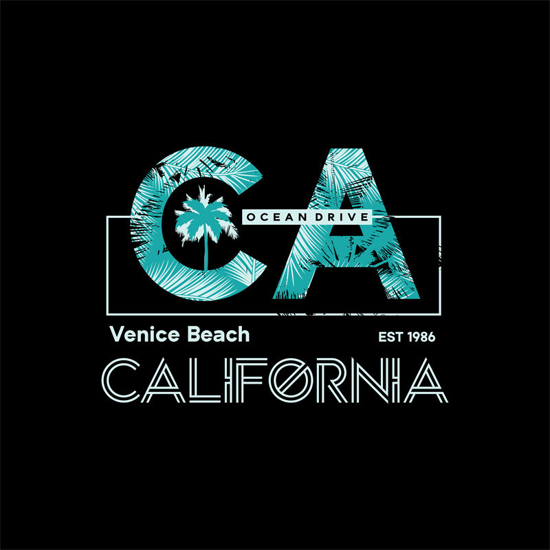 POP花型网 » 加州威尼斯海滩棕榈树纹样服装印花裁片