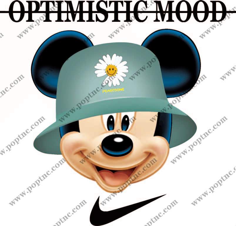 POP花型网 » 小邹菊米奇头像耐克字母印花矢量图服装裁片T恤烫图印花花型素材