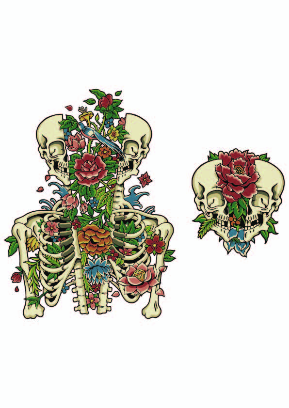 POP花型网 » 欧美风骷髅头牡丹花拼接印花矢量图服装裁片T恤烫图印花花型素材