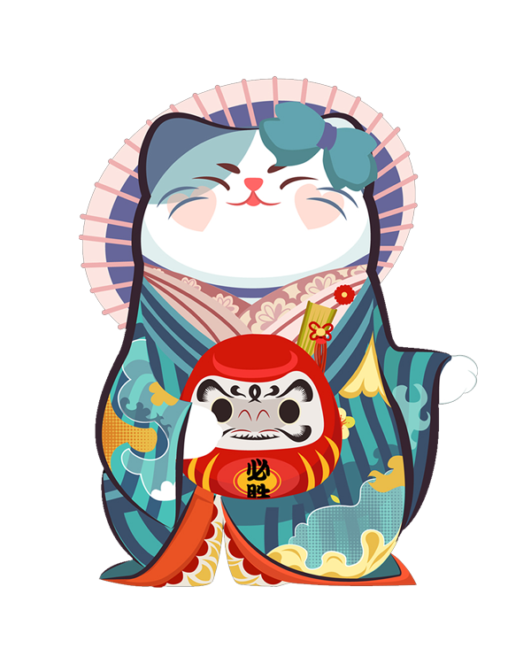 POP花型网 » 手绘卡通日式招财猫印花矢量图服装裁片T恤烫图印花花型素材