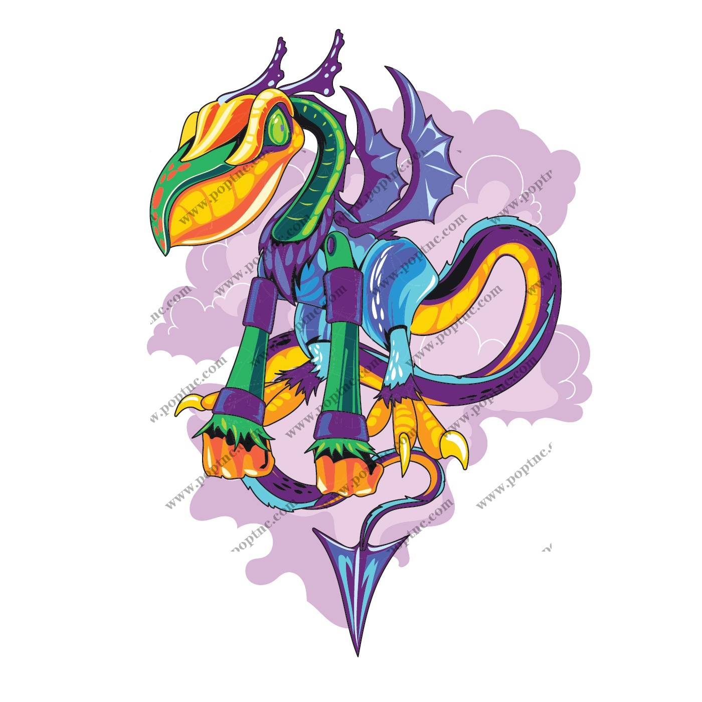 POP花型网 » 几何动物飞龙云朵矢量图服装裁片T恤烫图印花花型素材