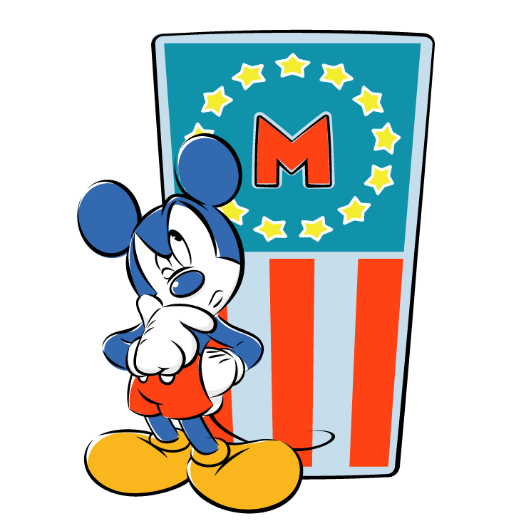 卡通动漫米老鼠五角星拼接印花矢量图服装裁片T恤烫图印花花型素材