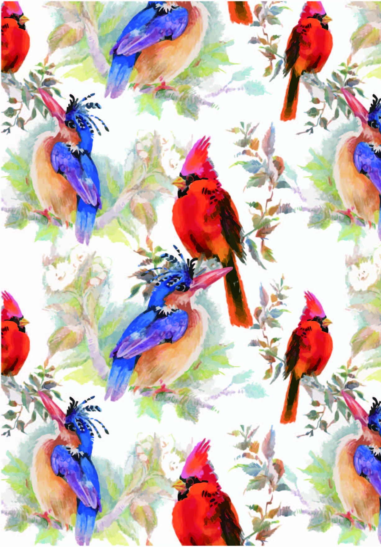 POP花型网 » 几何植物花纹动物翠鸟拼接印花矢量图服装纺织面料数码印花花型素材