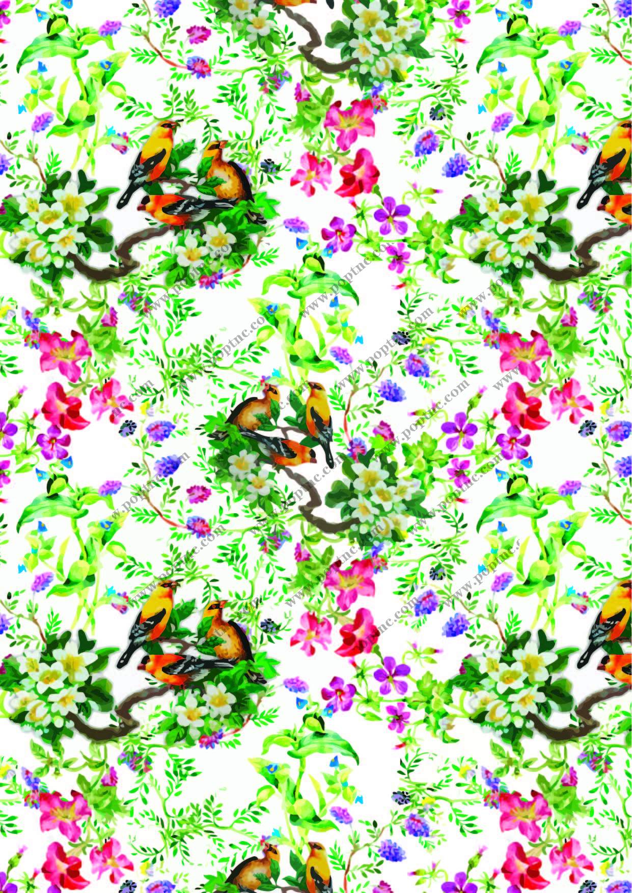 POP花型网 » 植物小碎花飞鸟拼接印花矢量图服装纺织面料数码印花花型素材