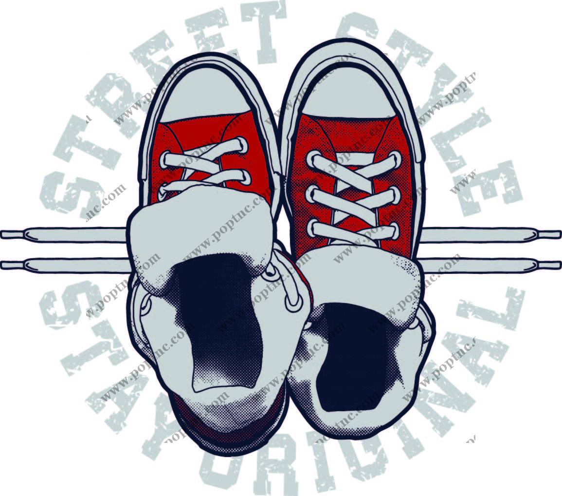 鞋子字母图案印花矢量图服装裁片T恤烫图印花花型素材