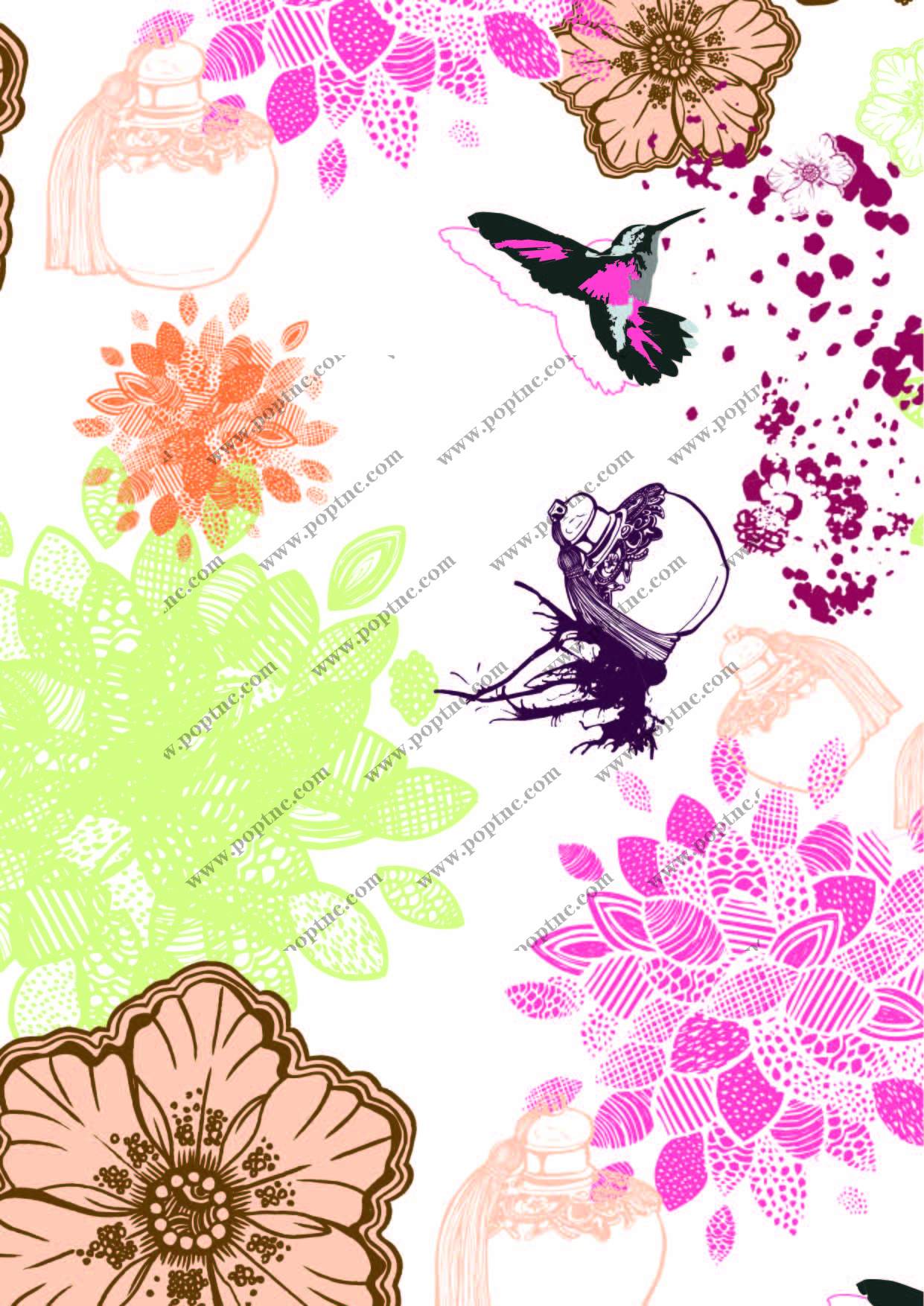POP花型网 » 植物花卉动物蜂鸟印花矢量图服装纺织面料数码印花花型素材